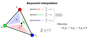 A typical Barycentric interpolation requires four steps: