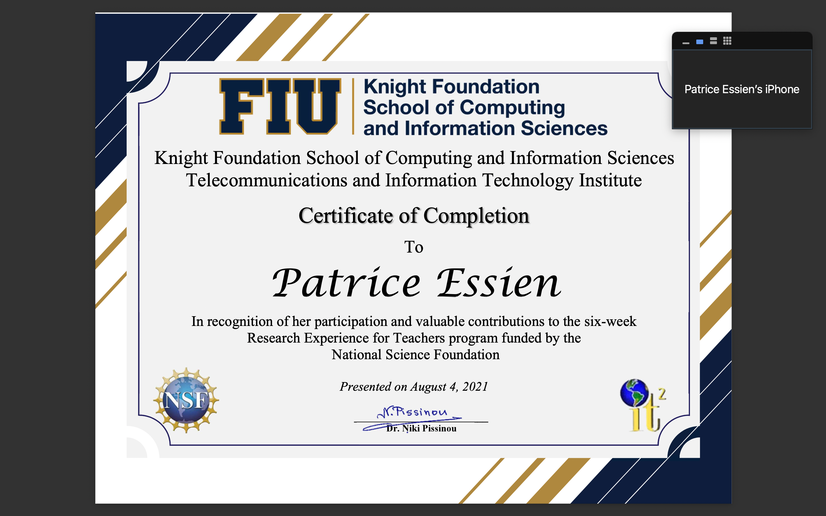 | Yanet Larramendi Sanchez | JC Bermudex Doral Senior High School | Threat Detection in Mobile IoT-Based Blockchains |