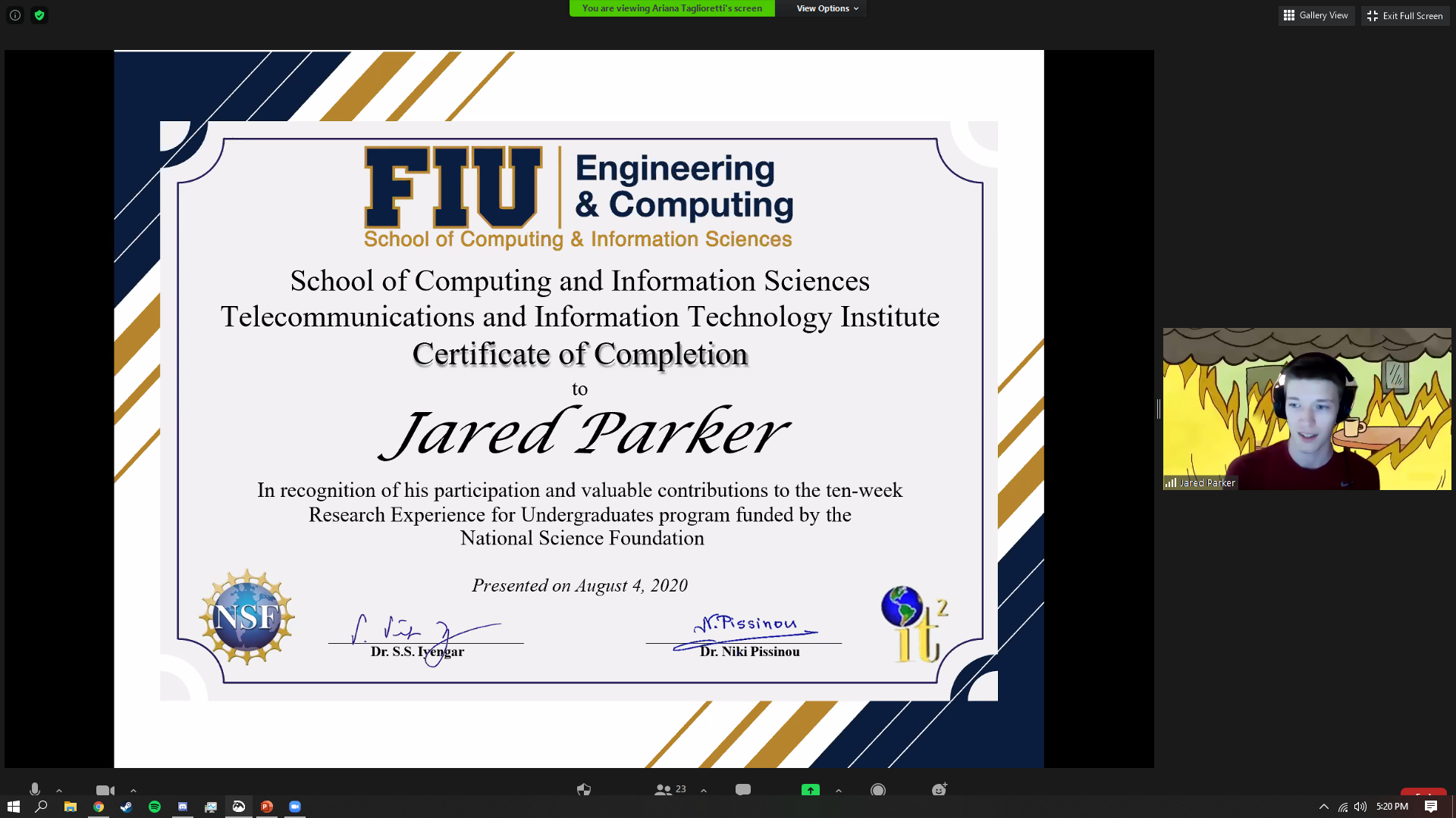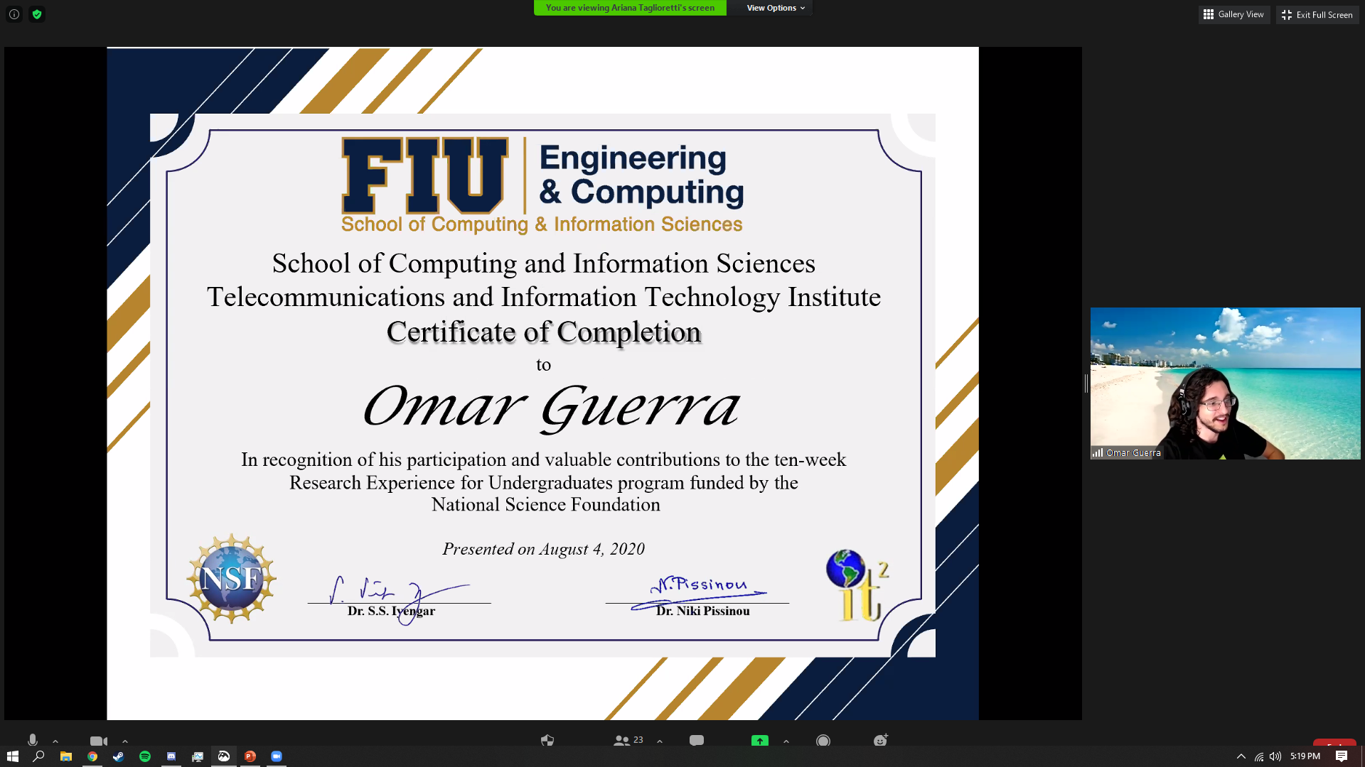 | Eric Perez | Florida International University | Lightweight Sensorchain | Dr. Niki Pissinou |
