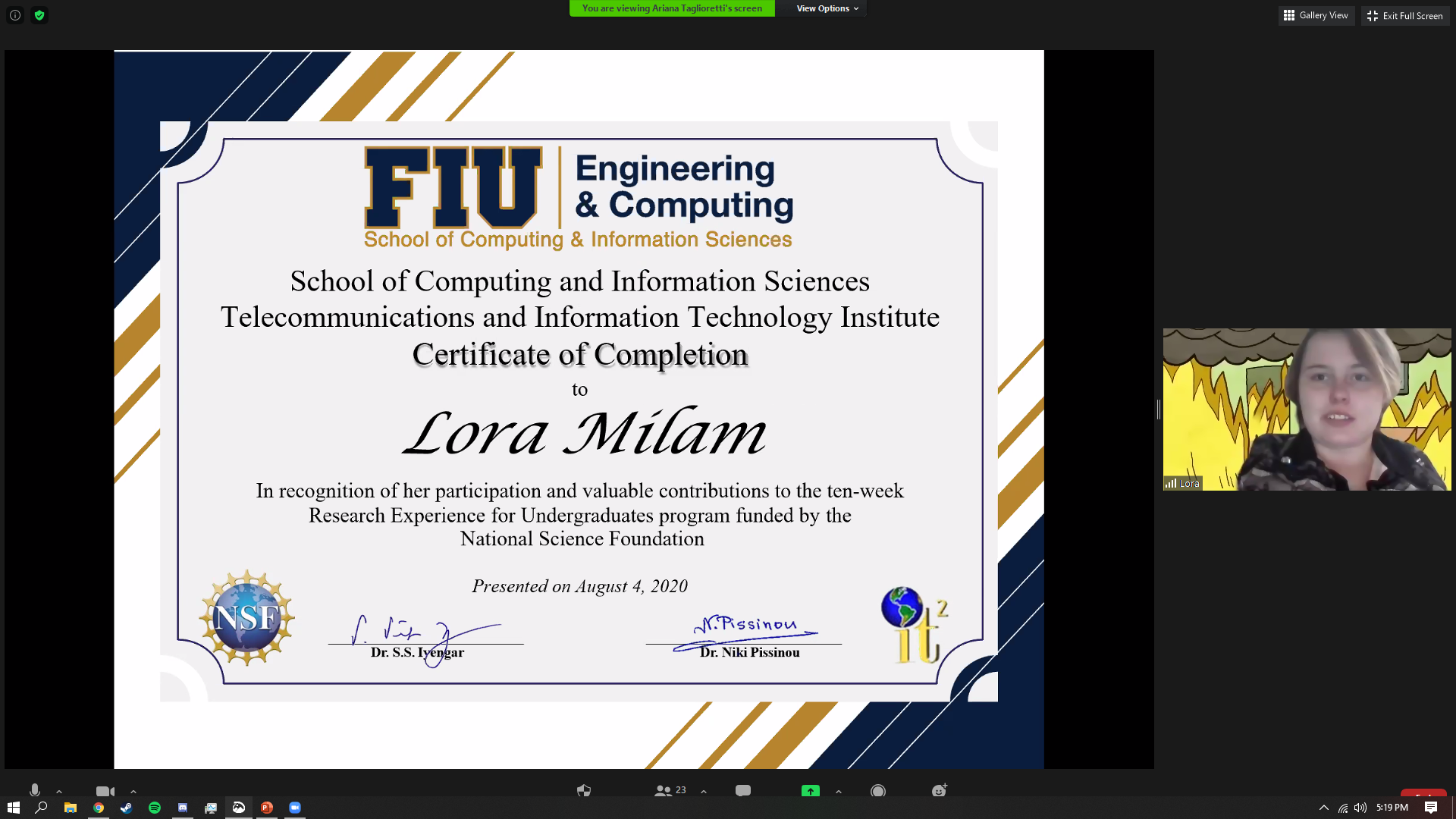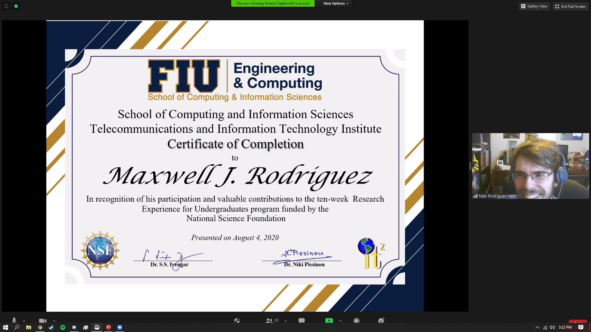 | Marcel Riera | Florida International University | Analysis of FANET Routing Protocols | Dr. Iyengar and Dr. Niki Pissinou |